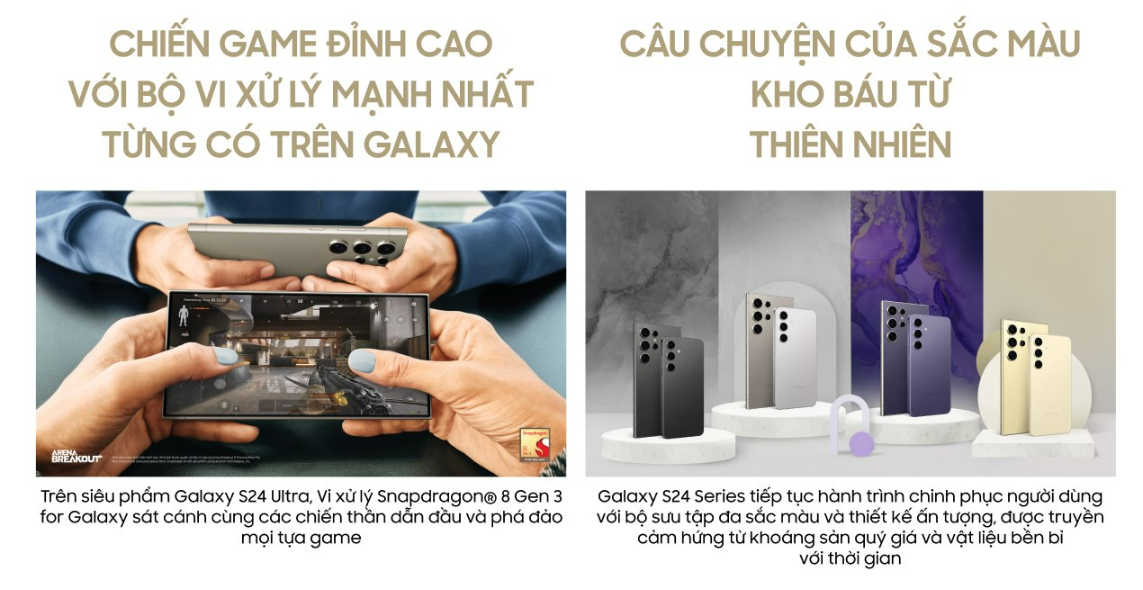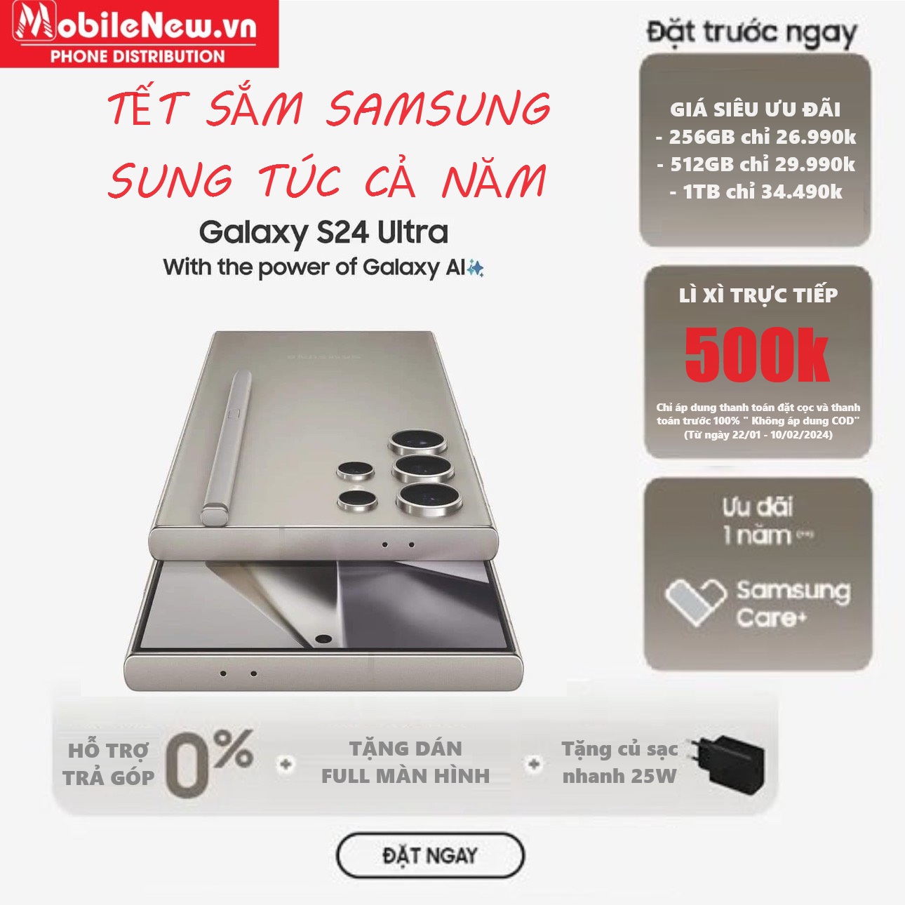 Samsung chính thức ra mắt mẫu điện thoại cao cấp nhất của họ trong năm 2024, Samsung Galaxy S24 Ultra. Sản phẩm này tiếp tục nâng cao từ thành công của thế hệ trước, với cải tiến đáng chú ý về thiết kế, hiệu năng, camera và thời lượng pin. Điểm đặc biệt bao gồm chip Snapdragon 8 Gen 3 for Galaxy, camera 200 MP và nhiều tính năng AI tích hợp.